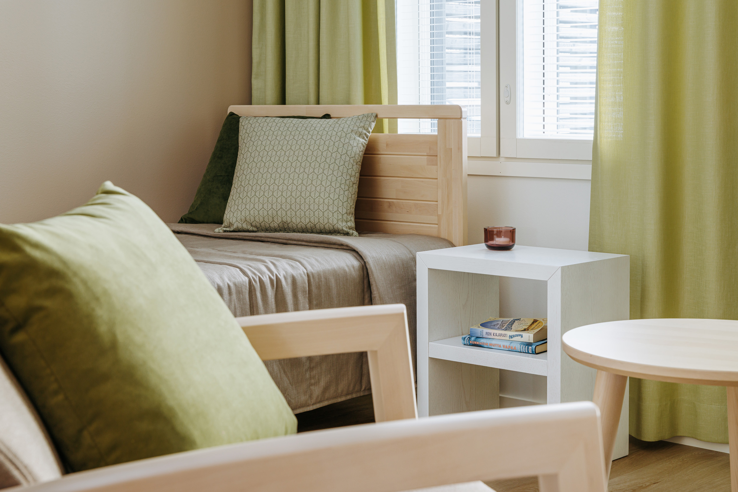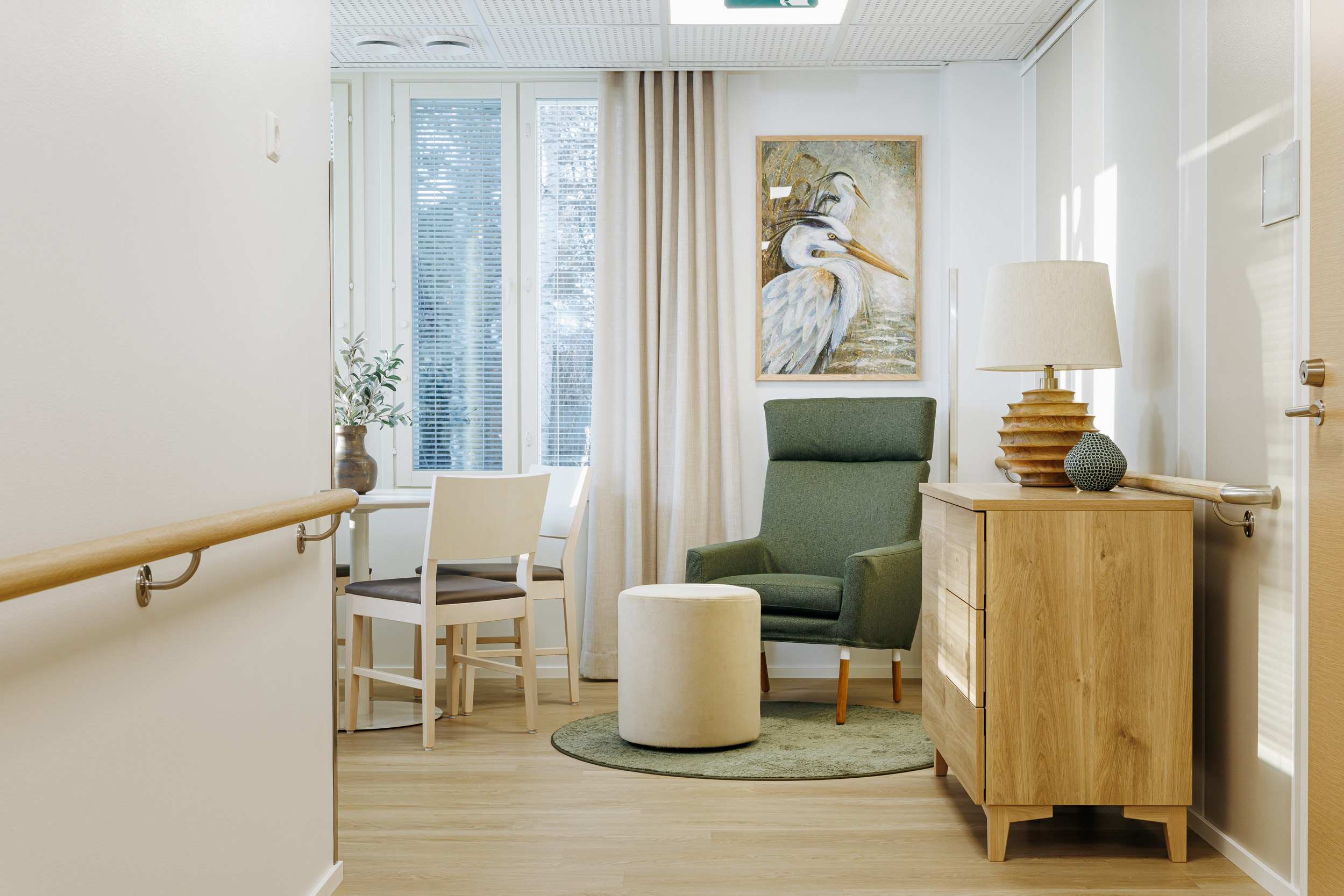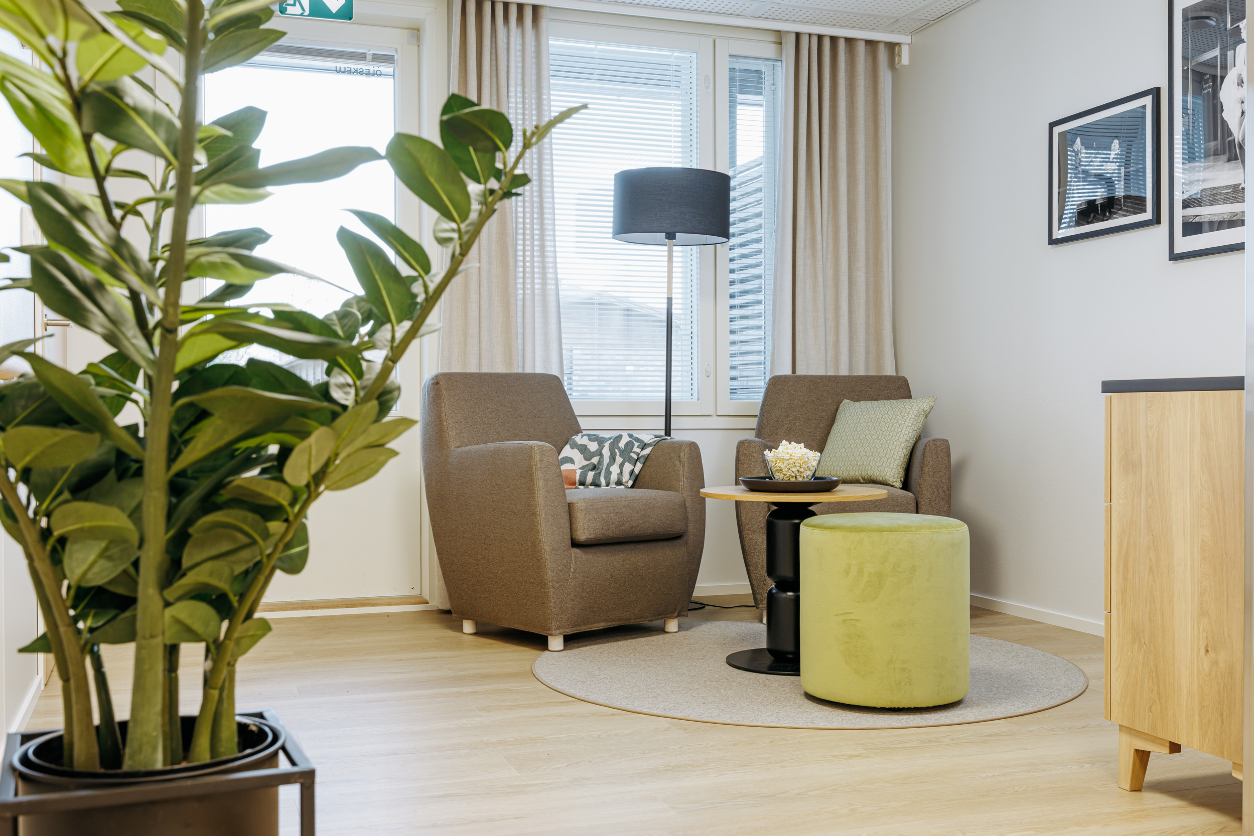 Marraskuussa 2025 kalustimme ympärivuorokautista asumispalvelua tarjoavan Buustinnankulman Seinäjoella. Asukaspaikkoja kohteessa on 15:lle mielenterveyskuntoutujalle. Asiakkaan toiveena oli viihtyisät ja rauhalliset tilat, joissa voi olla isossa porukassa tai tarvittaessa saada omaa tilaa, olematta kuitenkaan kokonaan eristyksissä.