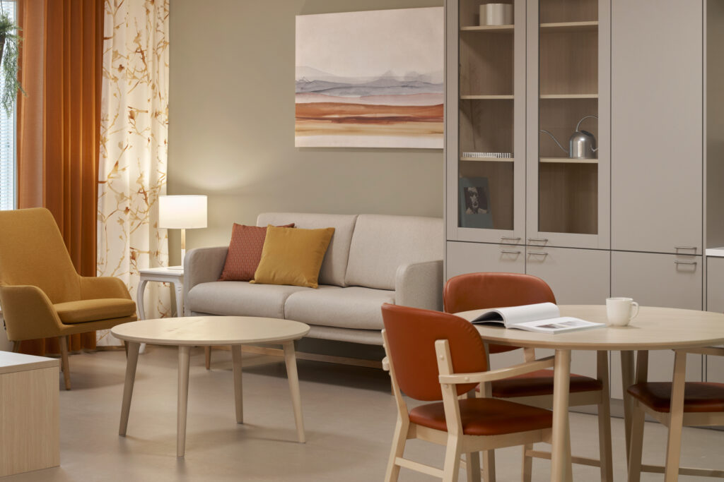 Toimitimme kalusteet ja sisustustuotteet kaikkiin ryhmäkoteihin, yhteistiloihin ja toimistoihin. Sisustustuotteina mm. matot, akustiikkatulut, silkkikasvit ja terassikalusteet istutuksineen.