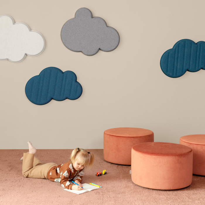 Pilvi akustiikkaelementti voidaan ripustaa tilan seinään tai kattoon parantamaan huoneen akustiikkaa. Pilviä on kahta mallia, Pilvi 1 on saatavilla myös sadepilvenä kauniilla pystyurituksella. Pilviä löytyy harmaan ja sinisen eri sävyissä sekä vihreänä, sillä pilvi 2 soveltuu muodoltaan myös pensaaksi!